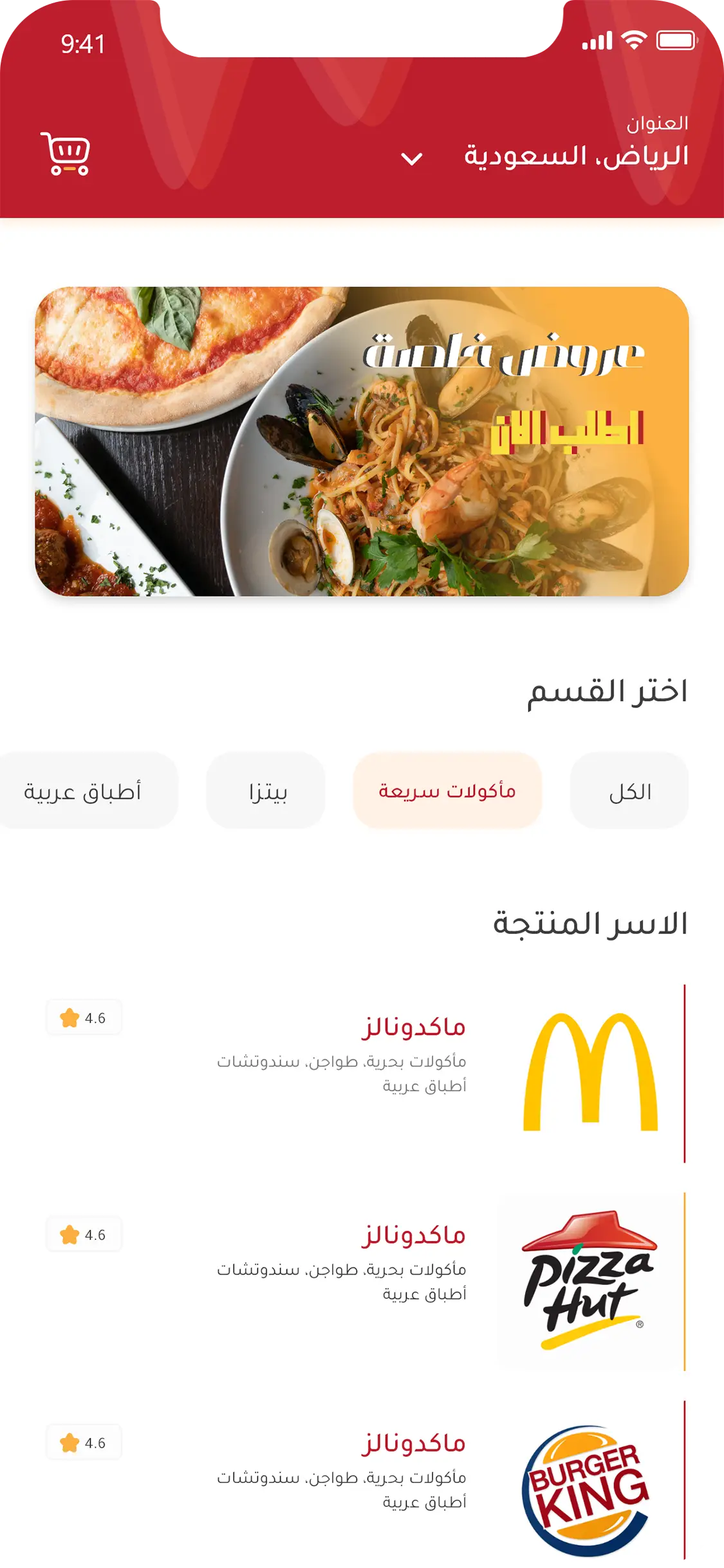 التطبيق الرئيسي لطلب الطعام وتتبع الطلبات في تصميم تطبيق توصيل طعام